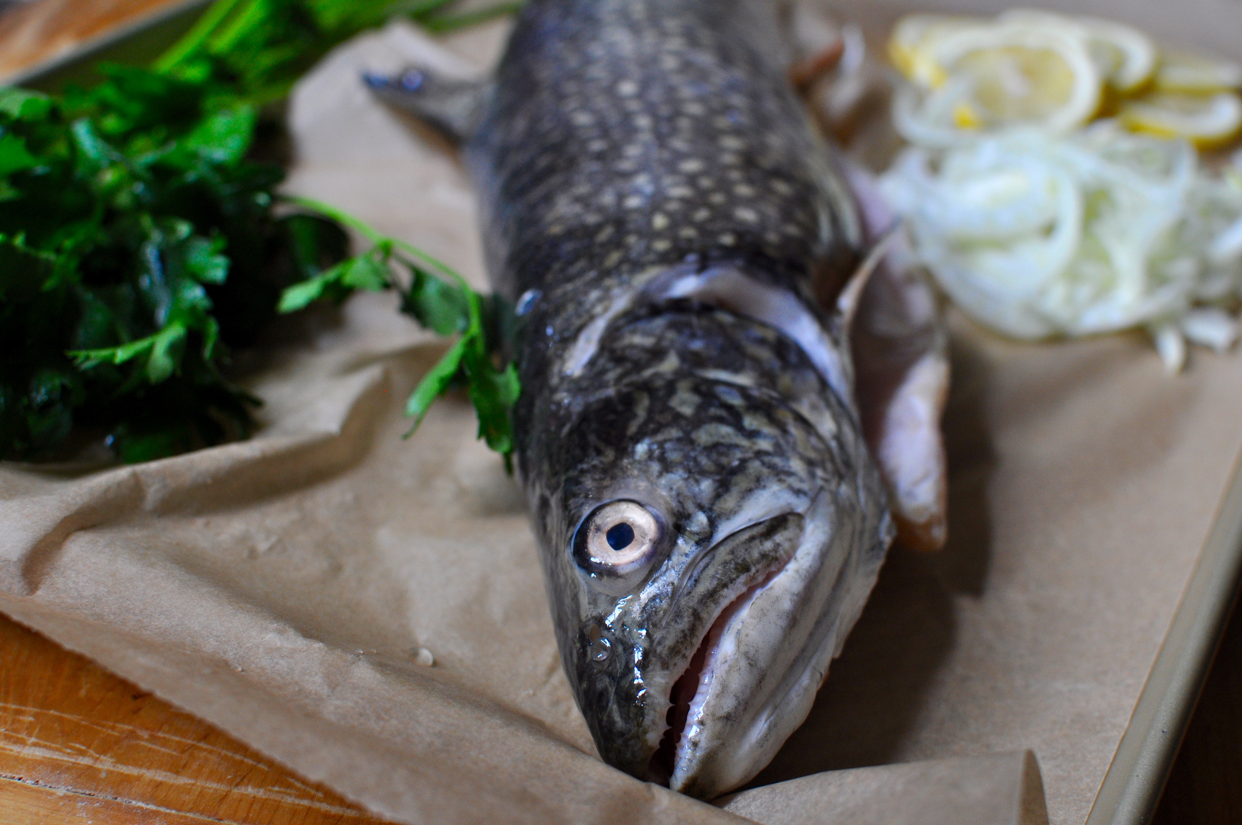 - 1 whole 3-lb trout or other similar sized fish such as snapper, scaled, gutted and cleaned
